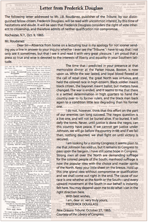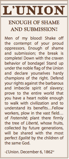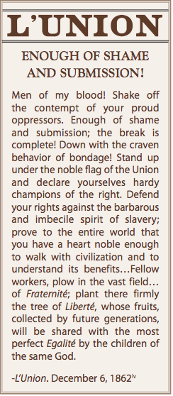 Extracts from the New Orleans Tribune, L’Union, and a letter from Frederick Douglass to J.B. Roudanez. (Click on images to enlarge)